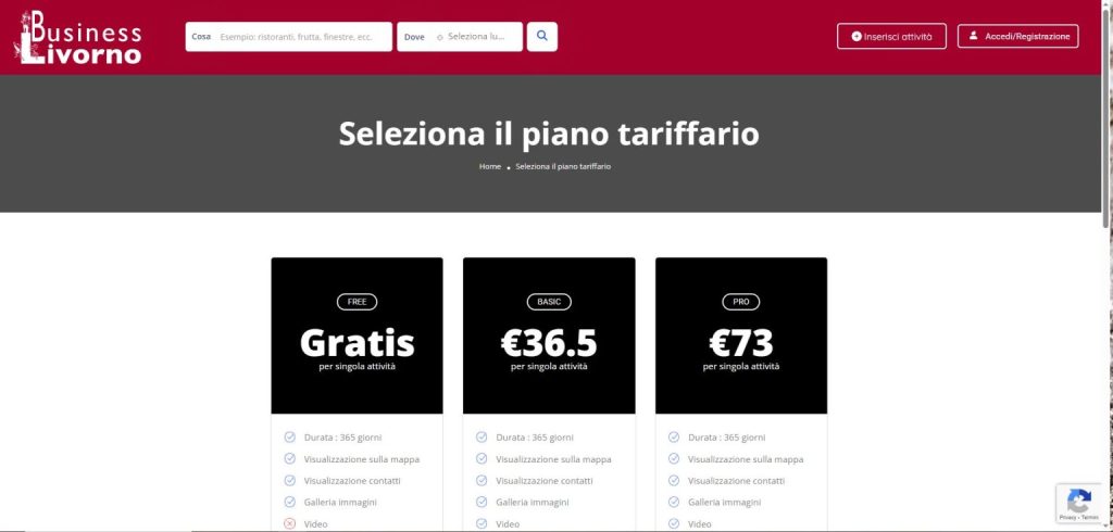 Ci sono tre diversi tipi di campagna pubblicitaria. La prima è relativa al posizionamento in cima alle ricerche è ha un costo di 1,00 euro + IVA al giorno. La seconda per quanto riguarda la presenza in Home di Livorno Business in ordine casuale nella sezione “Attività esclusive” ed ha un costo di 2,00 euro + IVA al giorno. L’ultima riguarda la presenza, sempre in ordine casuale, nella barra laterale della maggior parte delle pagine di Livorno Business ed ha un costo di 3,00 euro + IVA al giorno. E’ possibile impostare in autonomia i giorni della durata della Campagna Pubblicitaria e anche quale (si possono selezionare un tipo, due o anche tutti e tre i tipi di Campagna Pubblicitaria).